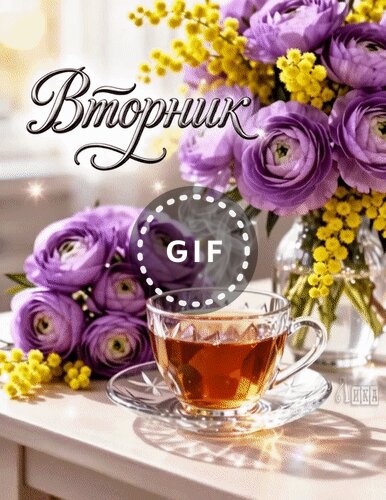 Теги:вторник, дни недели, гифка, анимация, красивая анимация, чай, цветы, розы, пионы, добрый день, доброе утро