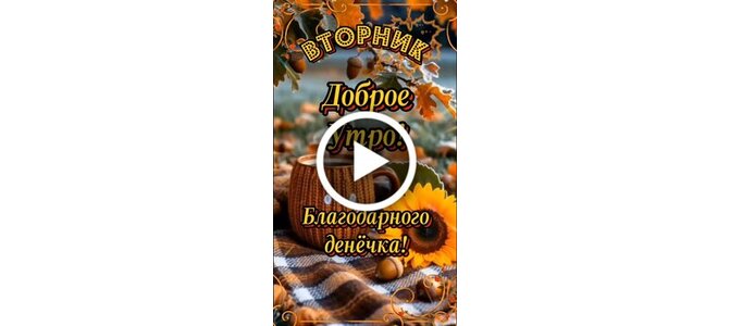 Видеооткрытка "Вторник. Доброе утро! Благодарного денёчка! Пусть день будет солнечным и очень радостным! "