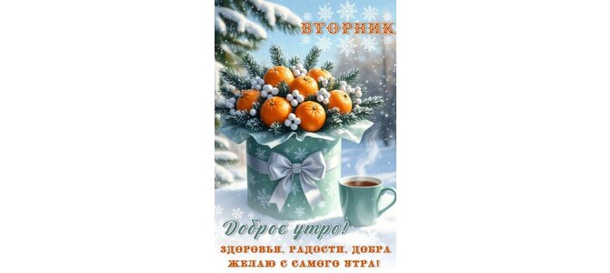 Открытка "Вторник. Доброе утро! Здоровья, радости, добра желаю с самого утра!"