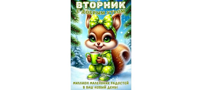 Открытка "ВТОРНИК. С ДОБРЫМ УТРОМ! МИЛЛИОН МАЛЕНЬКИХ РАДОСТЕЙ В ВАШ НОВЫЙ ДЕНЬ!"