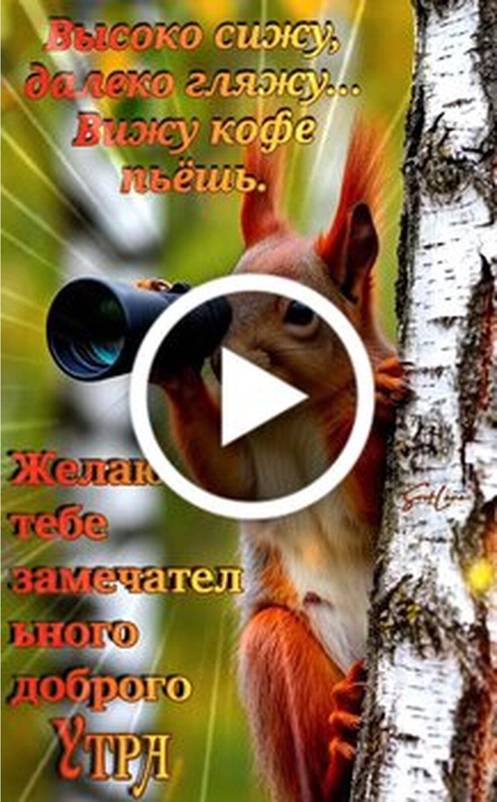 Видеооткрытка "Высоко сижу, далеко гляжу. Пожелание доброго утра"