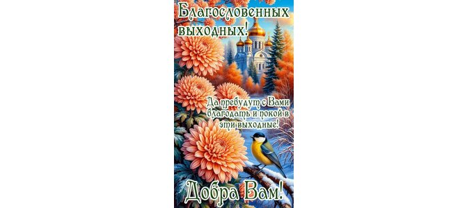 Благословенных выходных! Да пребудут с вами благодать и покой в эти выходные! Добра вам!