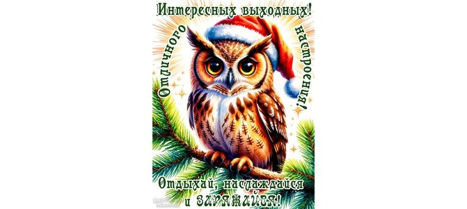 Интересных выходных! Отдыхай, наслаждайся и заряжайся! Отличного настроения!