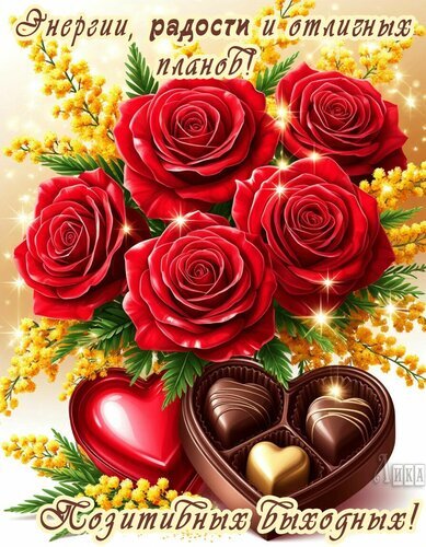 Теги:выходные, цветы, розы, конфеты, сладкое, дни недели, позитивных выходных, красивая картинка, энергии, радости, отличных планов