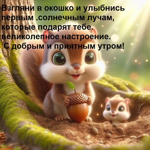 Открытка "Взгляни в окошко и улыбнись первым солнечным лучам, которые подарят тебе великолепное настроение."
