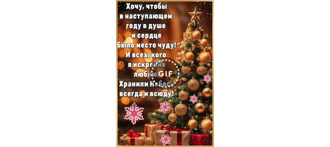 Анимированная открытка "Хочу, чтобы в наступающем году в душе и сердце было месту чуду! И всех, кого я искренне люблю, храни..."