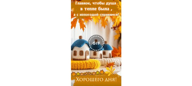 Анимированная открытка "Хорошего дня! Главное, чтобы душа в тепле была, а с непогодой справимся!"