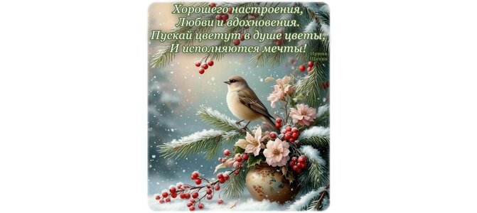 Хорошего настроения, любви и вдохновения. Пускай цветут в душе цветы, и исполняются мечты!