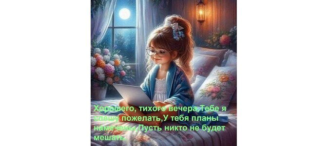 Теги:хорошего, тихого вечера, тебе я спешу пожелать, у тебя планы намечены, пусть никто не будет мешать