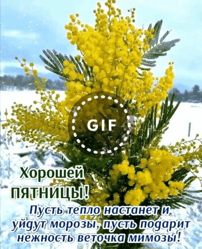Анимированная открытка "Хорошей Пятницы! Пусть тепло настанет и уйдут морозы, пусть подарит нежность веточка мимозы!"
