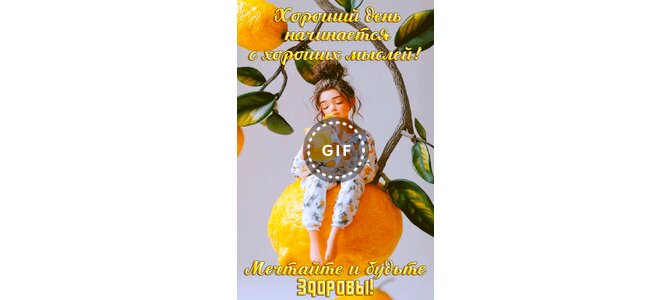 Анимированная открытка "Хороший день начинается с хороших мыслей! Мечтайте и будьте здоровы!"