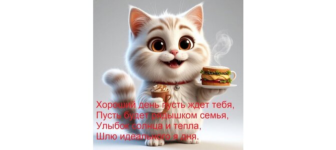 Теги:хороший день пусть ждет тебя, пусть будет рядышком семья, улыбок солнца и тепла, шлю идеального я дня