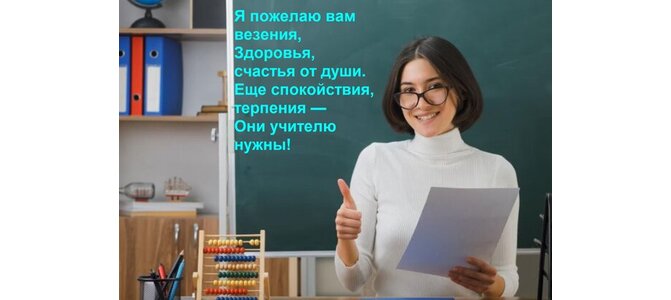 Теги:я пожелаю вам везения, здоровья, счастья от души еще спокойствия, терпения они учителю нужны