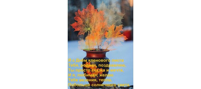 Теги:я с днём кленового листа тебя, родная, поздравляю, ты просто сказка и мечта, и я, любимая, желаю тебе везения, тепла, побольше солнечного света