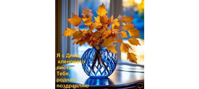 Открытка "Я с днем кленового листа тебя, родная, поздравляю"