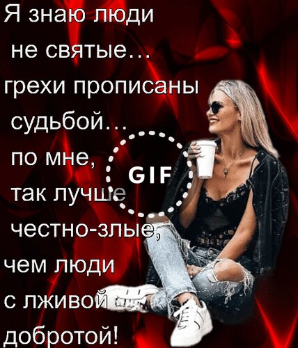 Анимированная открытка "Я знаю люди не святые... грехи прописаны судьбой... по мне, так лучше честно - злые, чем люди с"