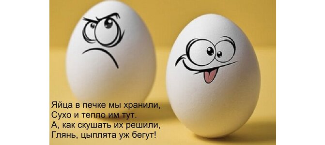 Теги:яйца в печке мы хранили, сухо и тепло им тут а, как скушать их решили, глянь, цыплята уж бегут