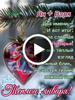 Ян + Варя Два имени И вот итог: ла славная ЯнВарья! В ней тёплый взгляд и снежный блик, и счастья тихий, нежный шик. Теплого января!