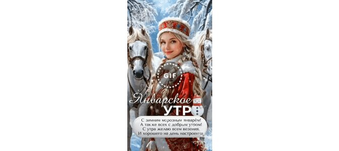Анимированная открытка "Январское утро! С зимним морозным январём! А также всех с добрым утром! С утра желаю всем везения."