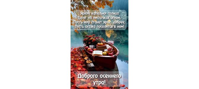Яркие капельки солнца Горят на листочках огнем. Пусть мир станет ярче, добрее, Пусть сказка поселится в нем! Доброго осеннего утра!