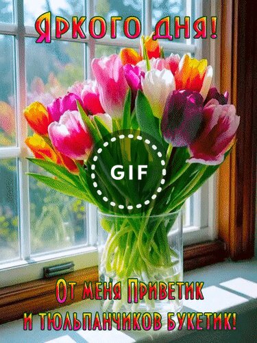 Открытка "Яркого дня! От меня Приветик и тюльпанчиков букетик!"