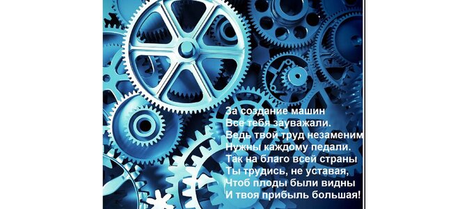 Открытка "За создание машин Все тебя зауважали. Ведь твой труд незаменим — Нужны каждому педали. Так на благо"