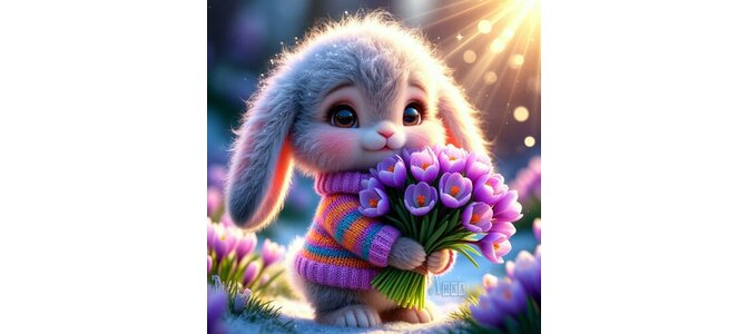 Теги:зайка с цветами, зайка, крокусы, цветы, зима, снег, лес, позитив, пушистик, милота, красивая картинка, пожелания на каждый день