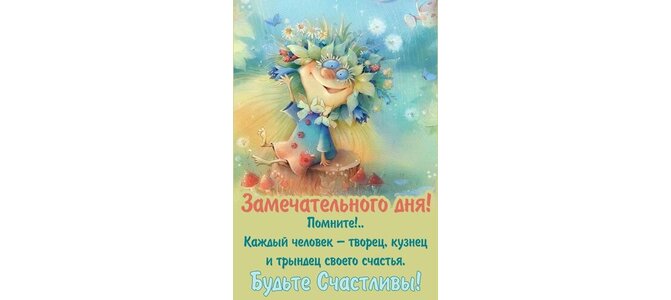 Замечательного дня! Помните!.. Каждый человек - творец, кузнец и трындец своего счастья. Будьте счастливы!