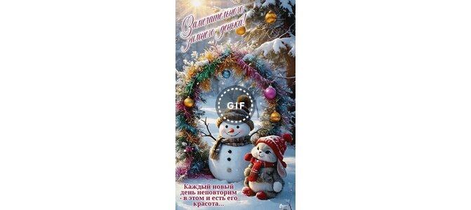 Анимированная открытка "Замечательного зимнего денька! Каждый новый день неповторим - в этом и есть его красота..."