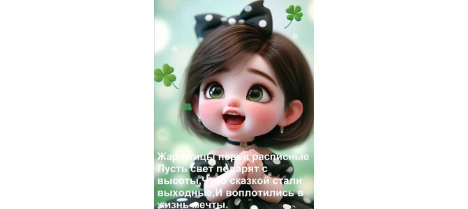 Теги:жар-птицы перья расписные пусть свет подарят с высоты, чтоб сказкой стали выходные, и воплотились в жизнь мечты