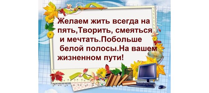 Открытка "Желаем жить всегда на пять, Творить, смеяться и мечтать. Побольше белой полосы На вашем жизненном пу"