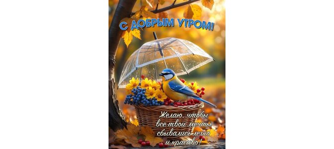 С добрым утром! Желаю, чтобы все твои мечты сбывались легко и красиво!