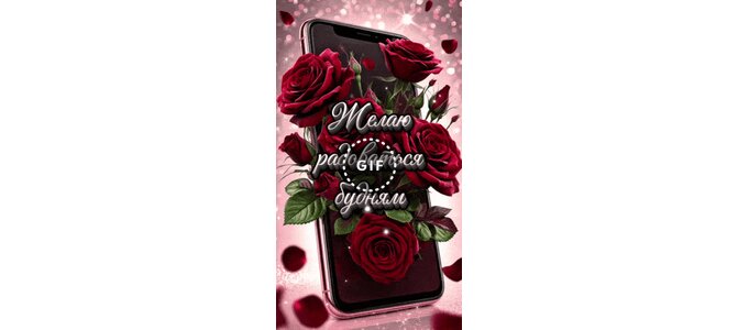 Анимированная открытка "Желаю радоваться будням и позитив в них находить. Дарить улыбку близким людям и самою счастливой быт"