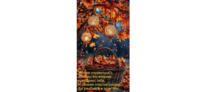 Теги:желаю справиться с делами, что вторник преподнес тебе, и обними счастье руками, ты улыбайся в этом дне