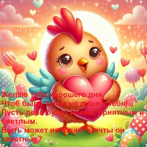 Открытка "Желаю тебе хорошего дня, чтоб было тепло на душе у тебя! Пусть день будет ярким, приятным и светлым."