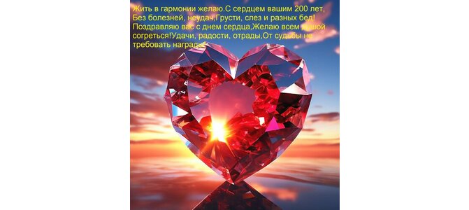 Открытка "Жить в гармонии желаю с сердцем вашим 200 лет, без болезней, неудач, грусти, слез и разных бед! "