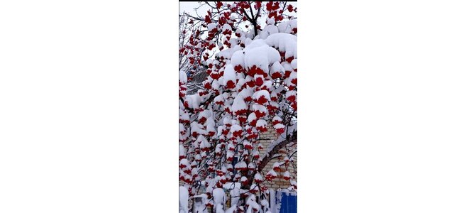 Ягоды рябины на ветках в снегу