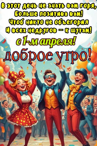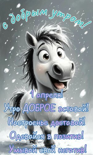 Открытка "С добрым утром. 1 апреля. Утро доброе, вставай, настроение одевай"