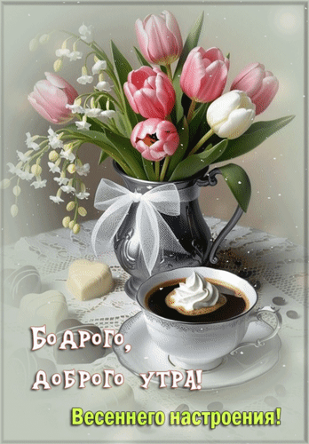 Анимированная открытка "Бодрого, доброго утра! Весеннего настроения!"