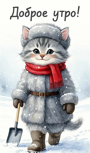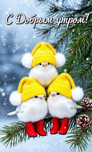 Открытка "Доброе утро. Возьму мольберт и нарисую весну в заснеженном саду"