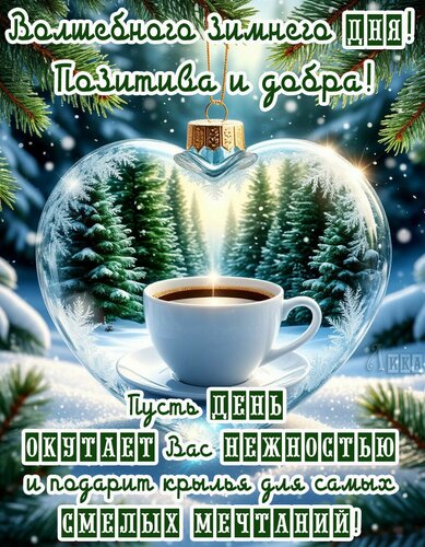 Открытка "ДОБРОЕ УТРО! НА УЛИЦЕ МОРОЗ, А НА ДУШЕ ПУСТЬ БУДЕТ ТЕПЛО, УЮТНО, РАДОСТНО!"из раздела доброе утро