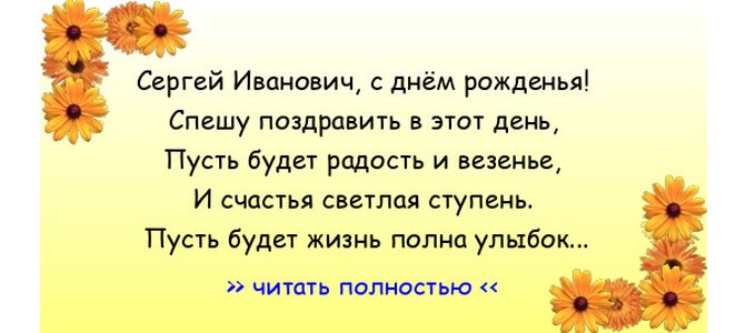 Поздравление с днем рождения для Сергея "Сергей Иванович, с днём рожденья!"