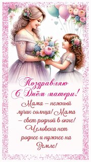 В России День матери стали отмечать сравнительно недавно. Осенью 1997 года Государственная Дума приняла Федеральный закон о новом празднике, призванном «повысить общественную значимость материнства, сохранить гуманную традицию почитания матери, признания ее заслуг в воспитании подрастающего поколения и важной роли в укреплении семьи, нравственной атмосферы в обществе и государстве». Указ президента РФ от 30 января 1998 года определил: День матери следует отмечать ежегодно в последнее воскресенье ноября. Мы привыкли к мысли – мама сильная, она не нуждается ни в чьей поддержке, она сама кого хочешь поддержит. А так ли это? Может быть, наши мамы просто хотят казаться сильными даже в тех ситуациях, когда им действительно нужна поддержка – словом, делом, хотя бы взглядом… Они не хотят посвящать нас в свои переживания, потому что щадят нас: успеем ещё хлебнуть своих забот. А также и потому, что считают: малы еще, не поймем. Слово «мама» особое слово. Оно рождается как бы вместе с нами, сопровождая всю жизнь.Мама - это эталон всепоглощающей любви, терпеливости, нежности и заботы. Ребенок для матери - ее кровь и плоть, ее продолжение. Для нее собственное дитя - центр Вселенной. Женщина-мать готова, не задумываясь, встать на защиту ребенка, рискуя собственной жизнью, честью и достоинством. Это великая жертва! Недаром есть такое выражение «защищает как тигрица». Но даже тигрица не всегда будет бороться за жизнь своего детеныша. А вот истинная женщина-мать, не отступит ни перед каким препятствием и не спасует ни перед какой опасностью. Как только женщина поймет, что в ней зародилась новая жизнь, она становится матерью. Она начинает беззаветно любить свое еще неродившееся дитя. В ней просыпаются инстинкты самосохранения, самые лучшие человеческие качества и прекрасные чувства. Куда-то исчезает резкость, свойственная юным, появляются мягкость и степенность.С самых первых минут рождения собственного ребенка в женщине «умирает» бывшая девочка и рождается мать. Это настоя