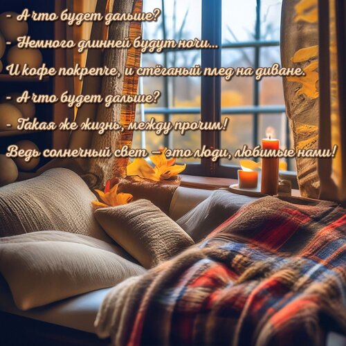 Открытка "-А что будет дальше?- Немного длинней будут ночи… И кофе покрепче, и стёганый плед на диване..."