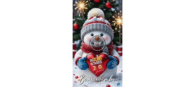 Анимированная открытка "До 2026 осталось 20 дней. Волшебство уже рядом..."