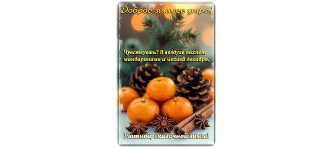 Доброе зимнее утро! Чувствуешь? В воздухе пахнет мандаринами и магией декабря. Уютной, сказочной зимы!
