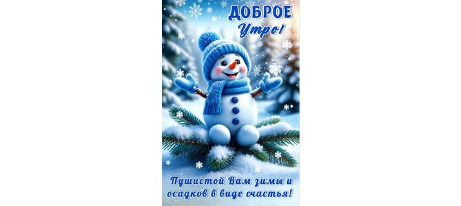 Открытка "ДОБРОЕ УТРО! ПУШИСТОЙ ВАМ ЗИМЫ И ОСАДКОВ В ВИДЕ СЧАСТЬЯ!"