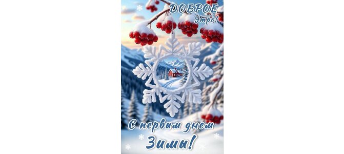 Открытка "ДОБРОЕ УТРО! С ПЕРВЫМ ДНЕМ ЗИМЫ!"