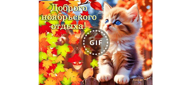 Анимированная открытка "Доброго ноябрьского отдыха!"