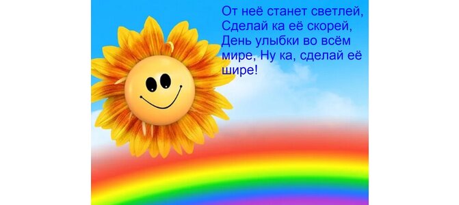 Открытка "От неё станет светлей, Сделай ка её скорей, День улыбки во всём мире, Ну ка, сделай её шире!"